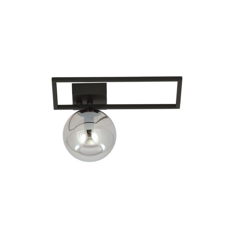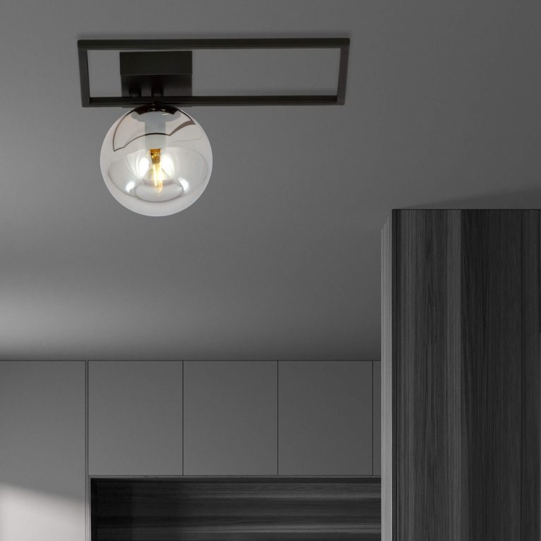 Oferowany przez nas model charakteryzuje się z jednej strony wysoką jakością materiałów i solidnym wykonaniem, a z drugiej modnym designem, który z pewnością przyciągnie uwagę Twoich gości. Konstrukcja sufitowej lampy Sole M Oblong składa się z trzech głównych elementów: prostokątnej ramy, kulistego klosza oraz kwadratowej podsufitki. Cały stelaż wykonany został ze stali lakierowanej na czarno. Najbardziej dekoracyjną częścią jest jednak szklany klosz o pięknym, popielatym odcieniu.