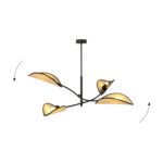 Dłuższą chwilę uwagi warto poświęcić właśnie tym bardzo stylowym abażurom. Wszystkie cztery klosze wygięte są na kształt, kojarzący się z wyglądem rozwijającego się dopiero liścia. Każdy abażur wykonany jest z naturalnego rattanu. Dodatkowo klosze-liście wykończone zostały na brzegach czarną lamówką. Rattanowa lampa sufitowa Erin 4 idealnie koresponduje ze wszystkimi aranżacjami, inspirowanymi naturą. Może to być, na przykład, wystrój boho, skandynawski, czy urban jungle.