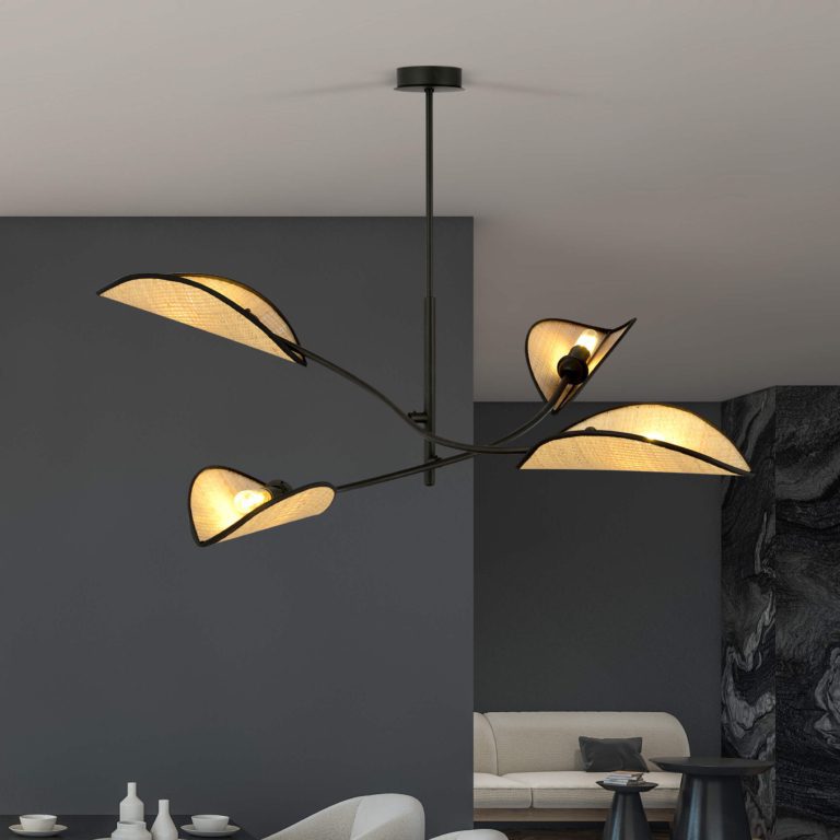 Twoim ulubionym trendem wnętrzarskim jest moda na aranżacje nawiązujące do natury? W naszym sklepie internetowym czeka na Ciebie wysokiej jakości oświetlenie w tym właśnie stylu. To, między innymi, czarna lampa sufitowa z rattanowymi kloszami Erin 4. Przeczytaj naszym opis i dowiedz się, na co warto zwrócić uwagę, przy wyborze właśnie tego modelu oraz z jakimi trendami najlepiej go połączyć.