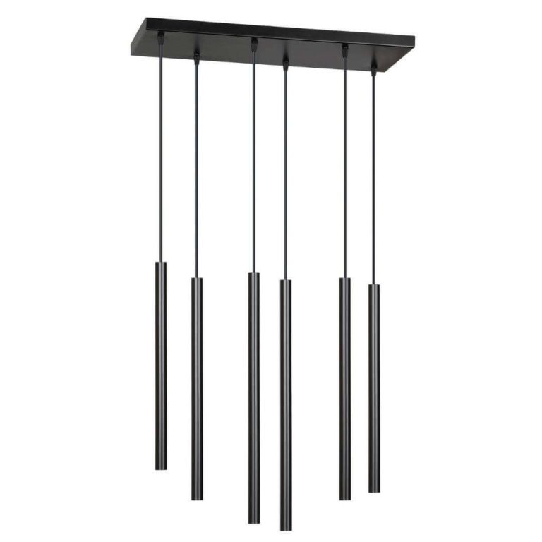Aby w pełni docenić prezentowane oświetlenie do wnętrz, warto bliżej przyjrzeć się jego konstrukcji. Wisząca lampa Aiden 6 wykonana jest z metalu, który pomalowano techniką proszkową na czarny kolor. Zdecydowana kolorystyka doskonale podkreśla designerski charakter całości. Oferowany model składa się z podsufitki o wymiarach 59×22 cm oraz aż sześciu punktów świetlnych w oprawie wąskich, podłużnych kloszy. Każdy z nich zawieszony jest na przewodzie zasilającym i przystosowany do żarówek LED.