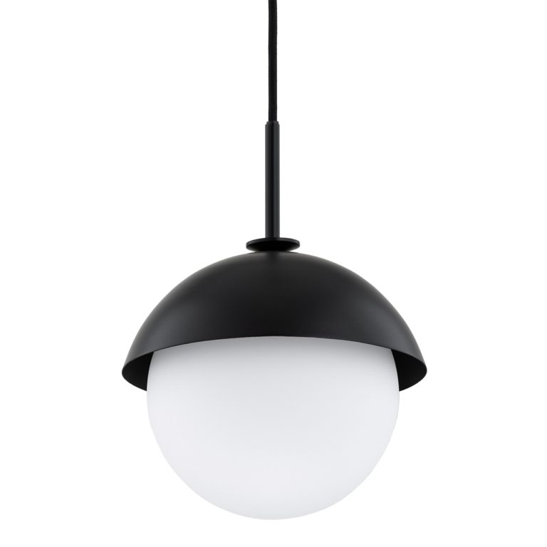 Czarna lampa wisząca Cappello z mlecznobiałym kloszem