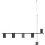 Lampa wisząca w kolorze czarnym Einar 6 może posłużyć jako nowoczesny żyrandol, który zamontujesz na dokładniej takiej wysokości, jakiej potrzebujesz. Polecana oprawa świetlna wyposażona jest bowiem w możliwość samodzielnego skrócenia zawieszenia. Maksymalna długość czarnej lampy wiszącej Einar 6 nad stół wynosi 110 cm, a jej stała szerokość 90 cm. Oferowany przez nasz sklep żyrandol z reflektorami to także praktyczna możliwość wyboru żarówek z funkcją ściemniającą światło.