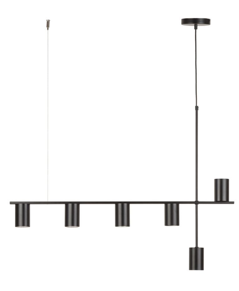 Lampa wisząca w kolorze czarnym Einar 6 może posłużyć jako nowoczesny żyrandol, który zamontujesz na dokładniej takiej wysokości, jakiej potrzebujesz. Polecana oprawa świetlna wyposażona jest bowiem w możliwość samodzielnego skrócenia zawieszenia. Maksymalna długość czarnej lampy wiszącej Einar 6 nad stół wynosi 110 cm, a jej stała szerokość 90 cm. Oferowany przez nasz sklep żyrandol z reflektorami to także praktyczna możliwość wyboru żarówek z funkcją ściemniającą światło.