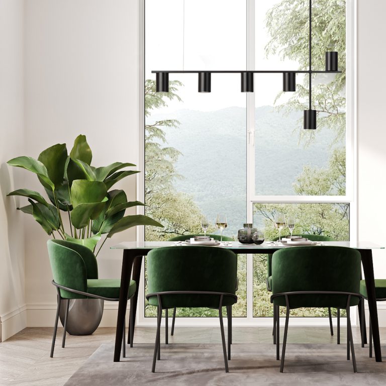 Skuteczne oświetlenie o nowoczesnym wyglądzie i klasycznym kolorze to właśnie czarna lampa wisząca Einar 6 nad stół do jadalni, ale i model, który sprawdzi się w Twoim salonie, sypialni, czy biurze. Oświetlenie Einar 6 to minimalistyczna forma, która dodaje wnętrzu lekkości, a dzięki uniwersalnej czerni pięknie komponuje się z aranżacjami o różnej kolorystyce.