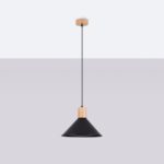 Czarna lampa wisząca Emily z drewnianymi elementami