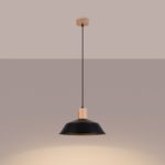 Czarna lampa wisząca Emily z metalowym kloszem doskonale sprawdza się jako lampa nad stół w jadalni, ale też do rozjaśnienia salonu, sypialni, bądź biura. Model wyposażony został w regulowane zawieszenie – to proste rozwiązanie pozwala zamontować oświetlenie na wysokości, jaka najbardziej Ci odpowiada. Czarna lampa wisząca Emily z metalowym kloszem to również detale wykonane z drewna w naturalnym kolorze oraz możliwość zastosowania nie tylko standardowej, ale i ściemniającej światło żarówki.