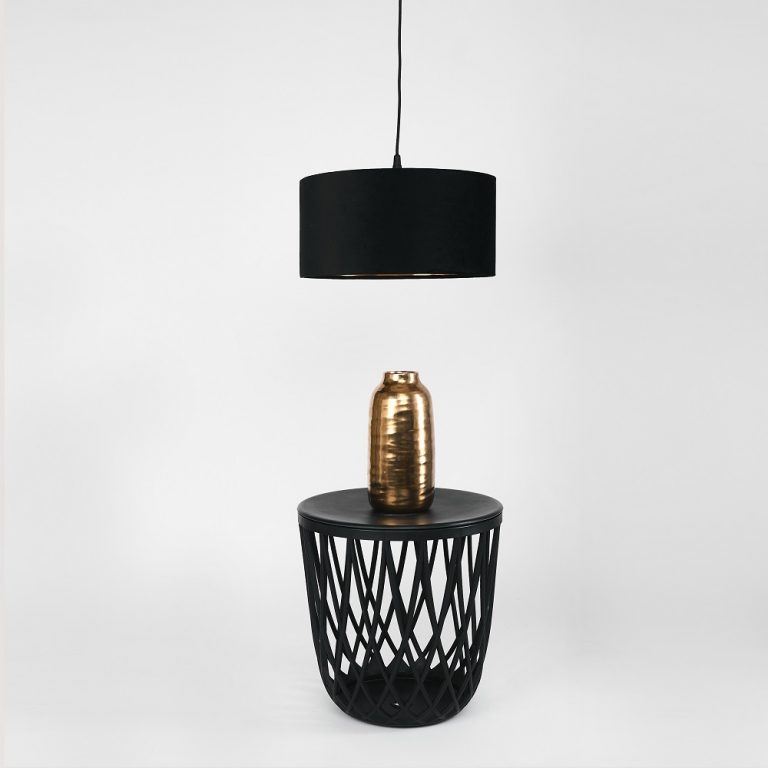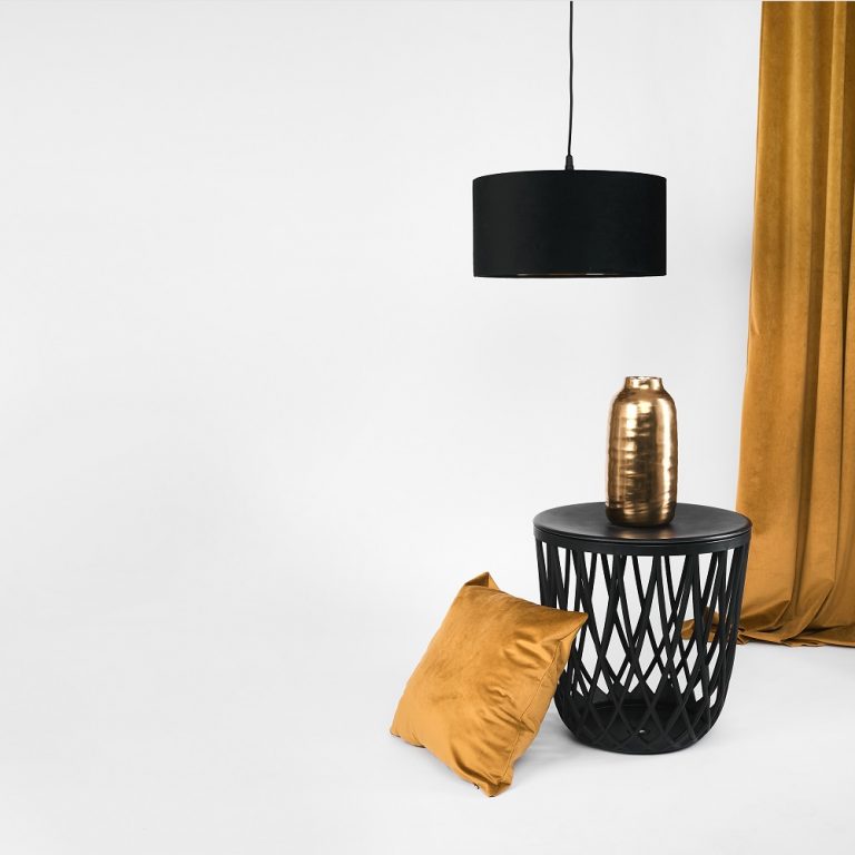 Lampa z abażurem przyciąga spojrzenia głęboką, matową czernią zestawioną z błyszczącym środkiem. Połączenie czerni ze złotem to ponadczasowa, elegancka klasyka formy, która pasuje do stylowych wnętrz. Jest to bardzo mocny akcent kolorystyczny w pomieszczeniach, który nadaje im głębi i wyrazistości.