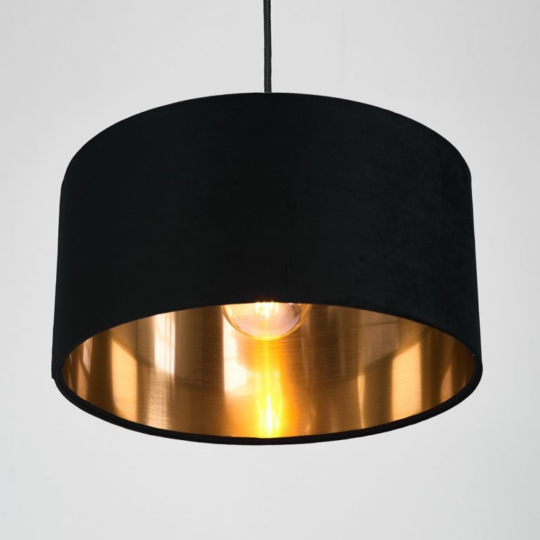 Czarna lampa ze złotym środkiem to propozycja do wnętrz z czarnymi elementami oraz złotymi dodatkami. Mogą to być nieduże akcenty na jasnym tle jak meble, stolik, zasłony czy poduszki. Pasuje też do wnętrz urządzonych w ciemniejszej tonacji, także z czarnymi ścianami czy sufitami.