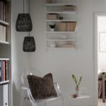 Biała lampa wisząca na listwie Enkel 3 L nad wyspę kuchenną