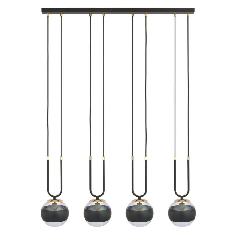 Czarna lampa wisząca ze złotymi elementami i transparentnymi kloszami Marga 4 występuje też w kilku innych wersjach kolorystycznych. Zapraszamy Cię do sprawdzenia wszystkich pozostałych opraw z tej samej kolekcji! Stwórz swoje wymarzone wnętrze i wypełnij je światłem!