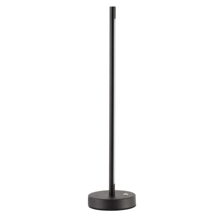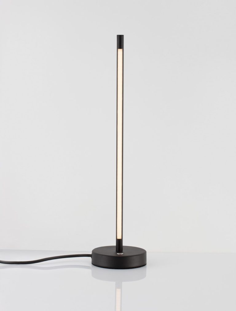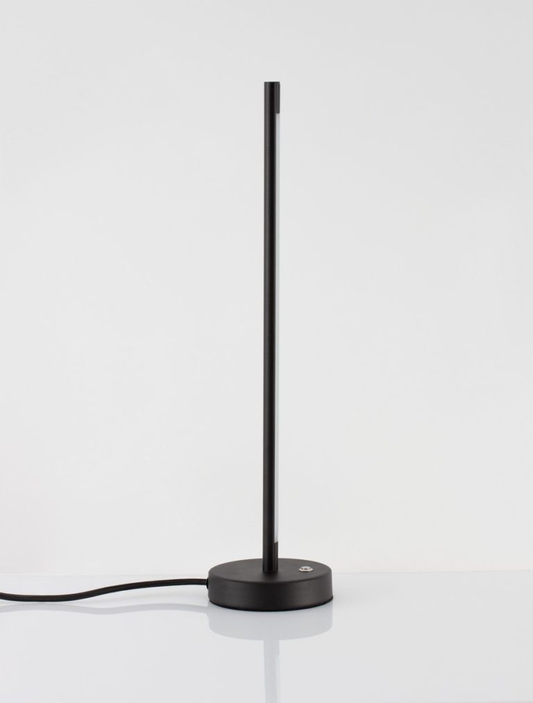 Czarna lampka biurkowa Cerro w minimalistycznym stylu ma postać podłużnego prostego klosza wyposażonego w zintegrowany panel świetlny LED oraz okrągłej podstawy z włącznikiem. Całość uzupełnia również czarny przewód zasilający. Nowoczesna lampka na biurko Cerro wykonana została z aluminium, ma wysokość 50 cm oraz szerokość 12 cm. Wbudowany panel ledowy emituje światło o ciepłej temperaturze barwowej na poziomie 3000 K.