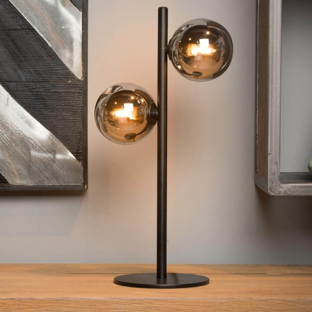 Czarna lampka Tycho na stolik z połyskującymi kloszami