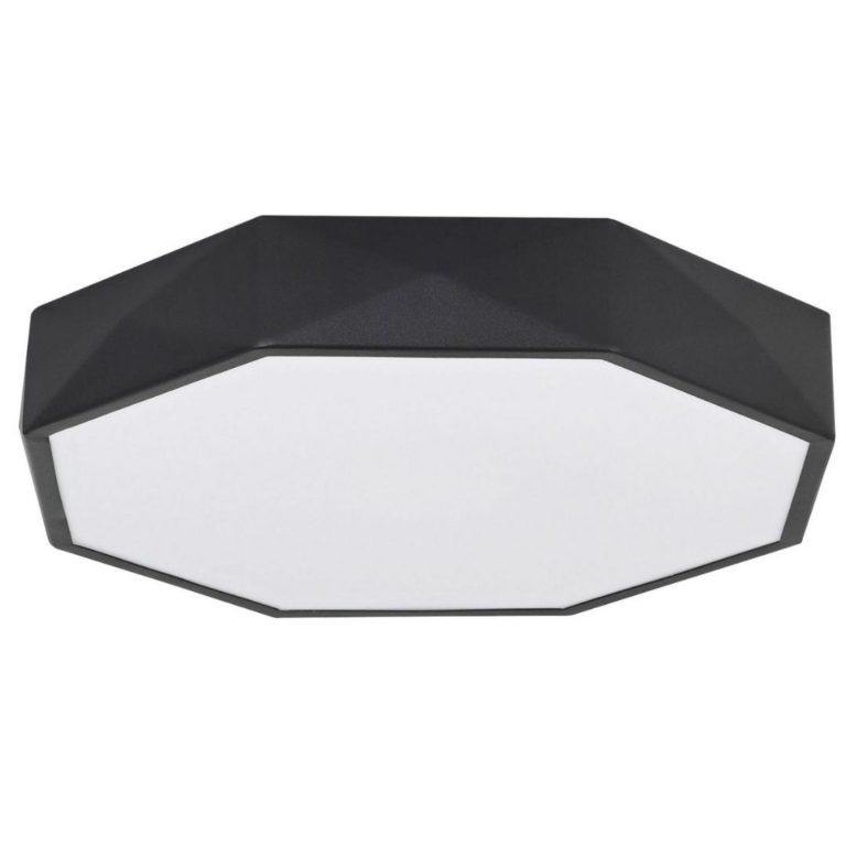Zwracasz uwagę na detale i szukasz nowoczesnego oświetlenia sufitowego? Czarna plafoniera o geometrycznej formie Angol przypadnie Ci do gustu! Wyróżnia ją klosz w kształcie oktagonu, który nadaje jej designerskiego charakteru. Oryginalna forma wraz z czarną kolorystyką, tworzą harmonijną całość inspirowaną współczesnymi trendami.