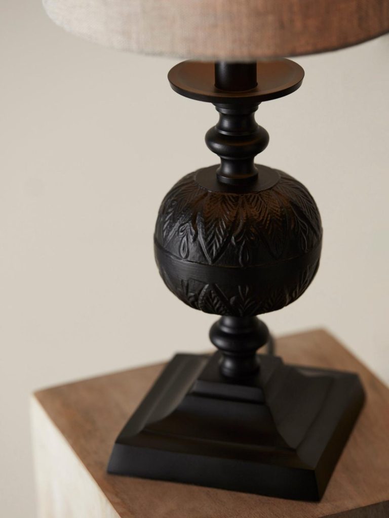 Czarna podstawa lampy stołowej Flory wykonana z metalu