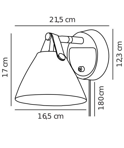 Polecana przez nas lampa ścienna w czarnym kolorze Strap składa się ze standardowego przyściennika z funkcjonalnym włącznikiem oraz z regulowanego klosza w rozszerzającym się ku dołowi kształcie. Dzięki ruchomości klosza możesz precyzyjnie nakierować światło na wybrane miejsce. Czarny kinkiet ścienny Strap idealnie nadaje się do czytania w sypialni, czy salonie, ale też do pracy przy biurku, czy jako oświetlenie w przedpokoju. Cała lampa na ścianę Strap ma wysokość 17 cm, głębokość 21,5 cm oraz średnicę klosza równą 16,5 cm.