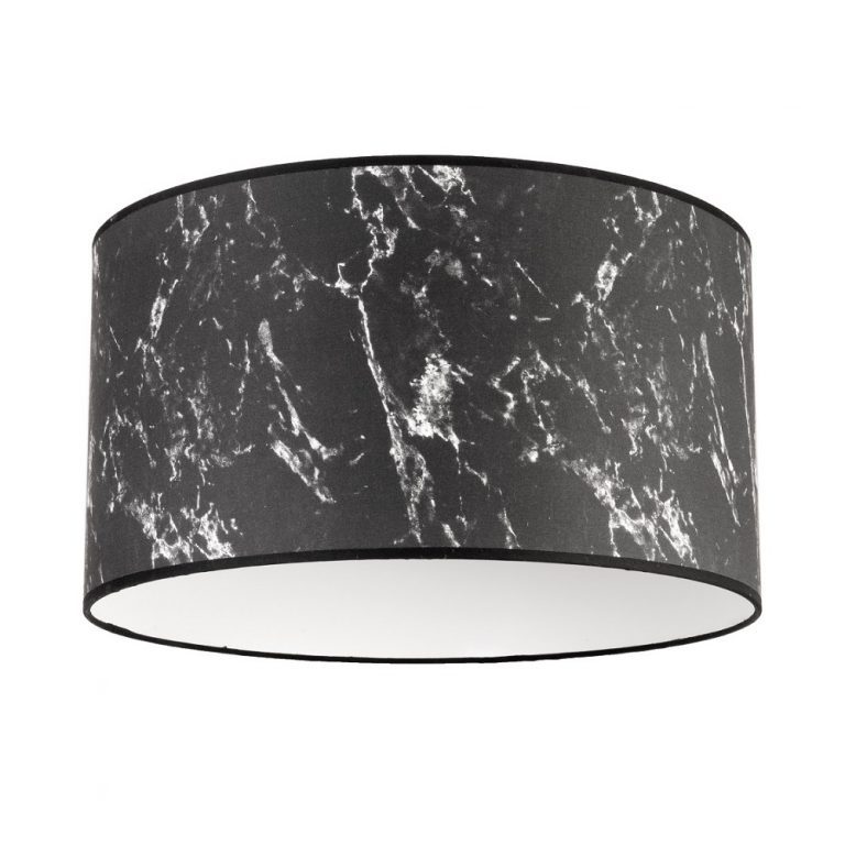 Abażur plafoniery sufitowej wykonany został z wysokiej jakości tkaniny bawełnianej w kolorze czarnym. Dzięki obecności marmurowego wzoru staje się on jeszcze bardziej elegancki. Ogólnie cała lampa sufitowa jest raczej minimalistyczna, dlatego stanowi doskonałe wykończenie większości wnętrz.