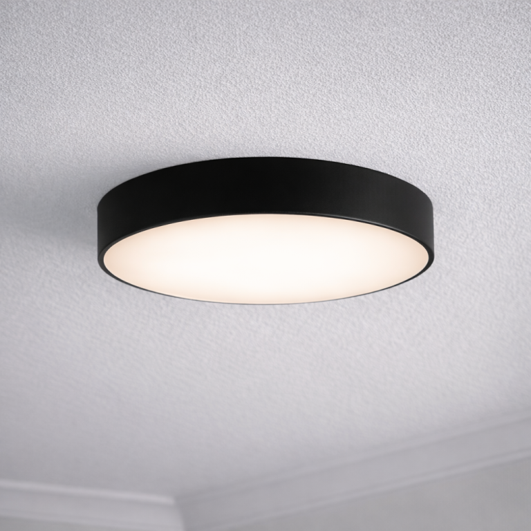 Nowatorska konstrukcja plafonu minimalizuje ilość światła, które wydostaje się spod lampy pozostawiając widoczną poświatę na suficie.