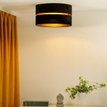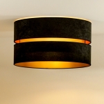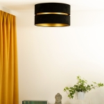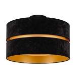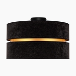 Model ten charakteryzuje się nie tylko ładnym designem i funkcjonalnością, ale również wysokiej jakości wykonaniem. Plafoniera sufitowa Duo została wyposażona w dwa czarne abażury, które wewnątrz wykończone są złotą folią. Sama osłona żarówki wykonana została z najwyższej jakości materiału zamszowego, który cechuje wysoka odporność na promienie UV. Sprawia to, że lampa nie ulega odbarwieniu, a my możemy Cieszyć się jej majestatem przez długie lata.