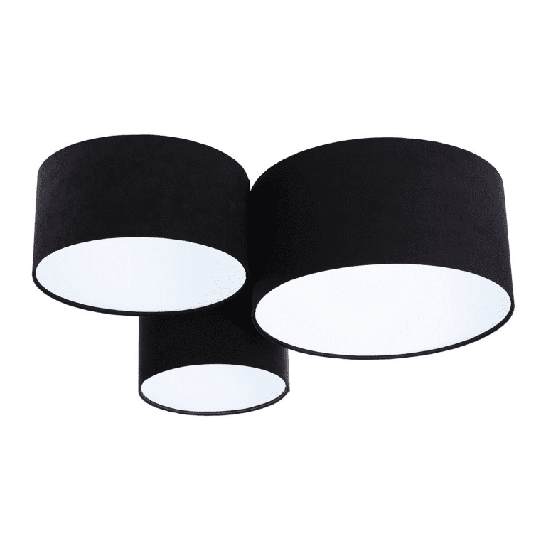 Czarny kolor wszystkich trzech kloszy sprawia, że potrójny plafon pięknie wyglądać będzie w nowoczesnym pokoju dziennym, w aranżacji utrzymanej w klimacie jasnym i chłodnym. Idealnie dopasuje się też do kontrastów, zieleni, a także do gustownego wystroju z nutą subtelnej elegancji.