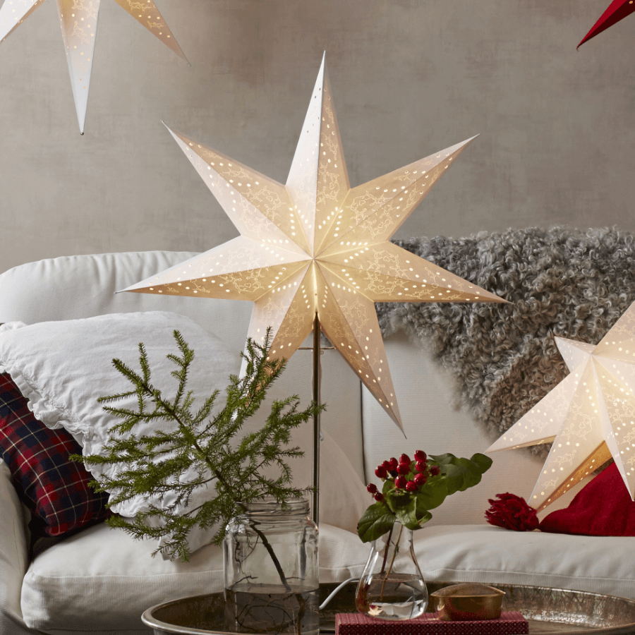 Dekoracyjna gwiazda Gaia stojąca w białym kolorze