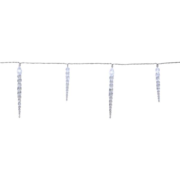Model składa się z kabla zasilającego, na którym rozmieszczone są w równych odstępach lampki w kształcie sopli – naprzemiennie – mniejsze i większe. Dekoracyjna kurtyna LED z timerem 600 cm posiada sterownik, który umożliwia aż osiem różnych sposobów świecenia.