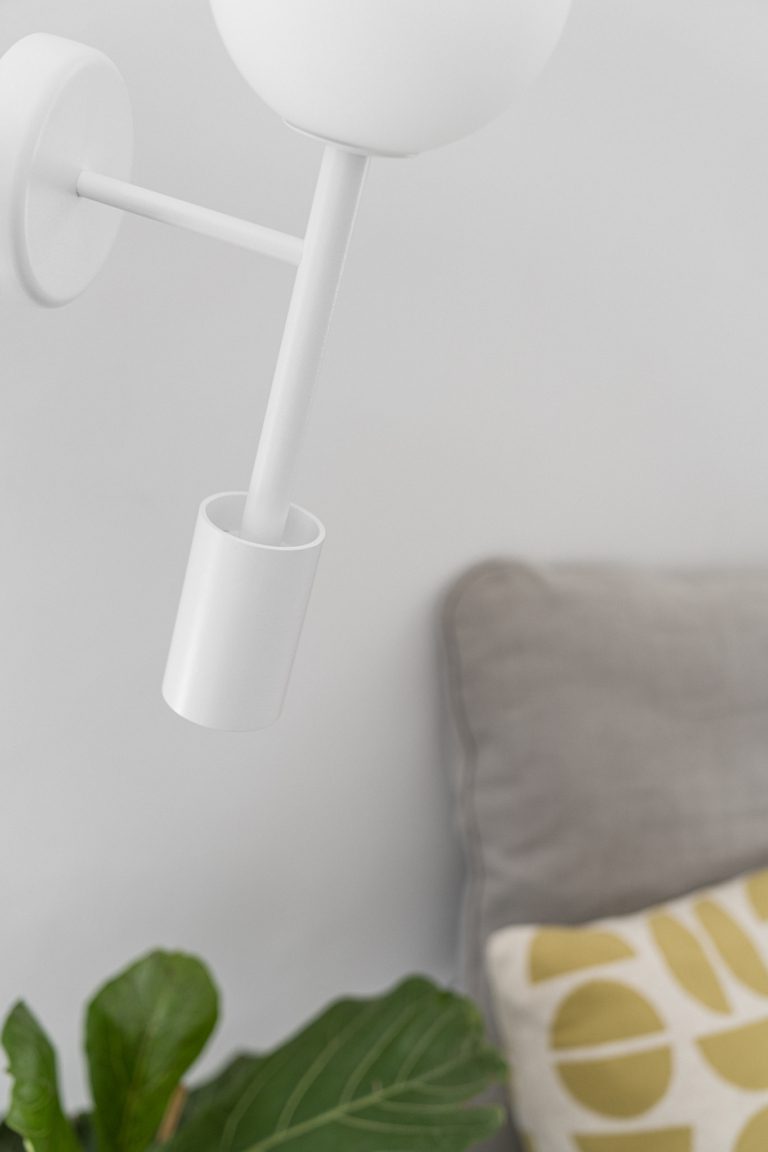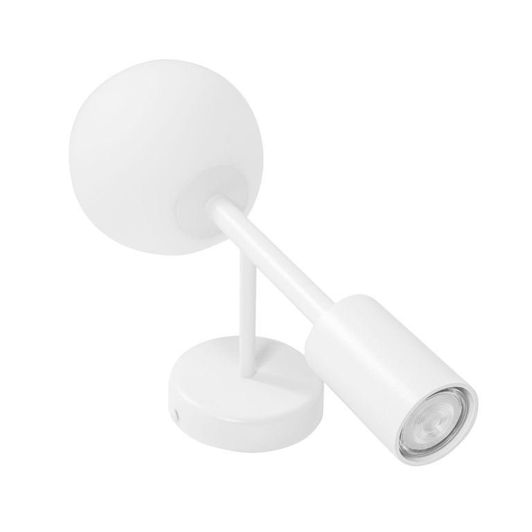 Kinkiet ścienny KOP B utrzymany jest w jednolitej kolorystyce – biały jest zarówno stelaż, jak i klosz. Tak zaprojektowane oświetlenie jest dyskretne, a jednocześnie bardzo stylowe. Wpływ ma na to nietypowa konstrukcja całości. Model ten wyposażony jest w dwa zupełnie różne źródła światła. Pierwsze z nich zamknięte jest w mlecznobiałym szklanym kloszu o kształcie kuli. Drugie natomiast to reflektor w metalowej oprawce, który skierowany jest światłem ku dołowi. To wyjątkowo designerski pomysł, który sprawi, że nawet najbardziej zwyczajna aranżacja wnętrza nabierze charakteru!