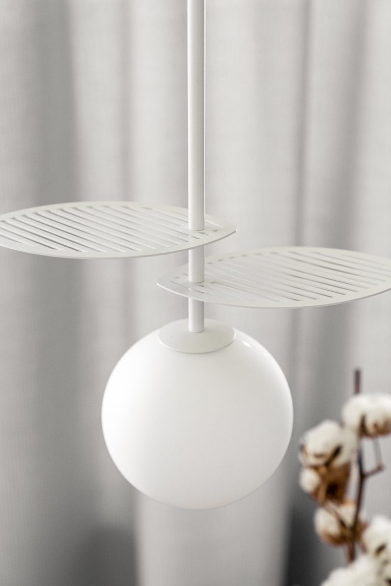 Metal i szkło to dwa zupełnie różne materiały, które łączy jednak wspólna kolorystyka. Biała dekoracyjna lampa wisząca FYLLO A doskonale prezentuje się we wszystkich nowoczesnych aranżacjach, w których dominować ma funkcjonalność oraz przemyślane dodatki o designerskim charakterze. Biel idealnie komponuje się z każdą inną barwą, dlatego wybrać możesz dowolny kolor ścian i innych dodatków.