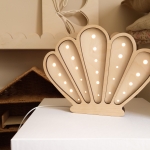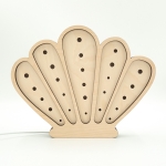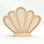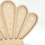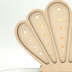 Dekoracyjna lampka dziecięca Muszelka wykonana została z wysokiej jakości, certyfikowanej sklejki brzozowej oraz wyposażona jest w sześciostopniowy ściemniacz z technologią płynnej zmiany natężenia światła. Dodatkowo model oferuje dwie barwy oświetlenia do wyboru (neutralną lub ciepłą).