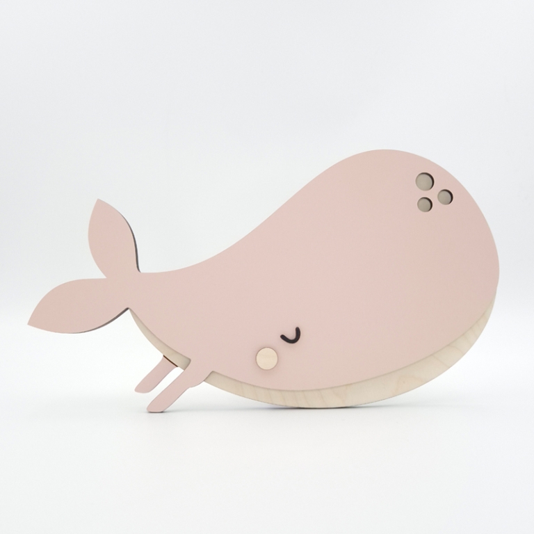 Dużą zaletą różowego Wieloryba jest możliwość wybrania barwy światła (neutralnej lub ciepłej), a także sposobu zasilania (zasilacz USB lub trzy baterie AA). W wersji z zasilaczem zyskujesz również sześciostopniowy ściemniacz do kontrolowania intensywności światła, co z pewnością przyda się podczas usypiania malucha. Dodatkowo każdy wariant wykonano z wysokiej jakości sklejki drewnianej.