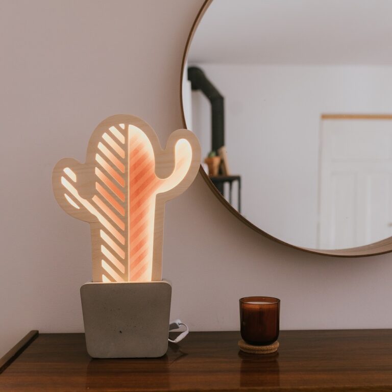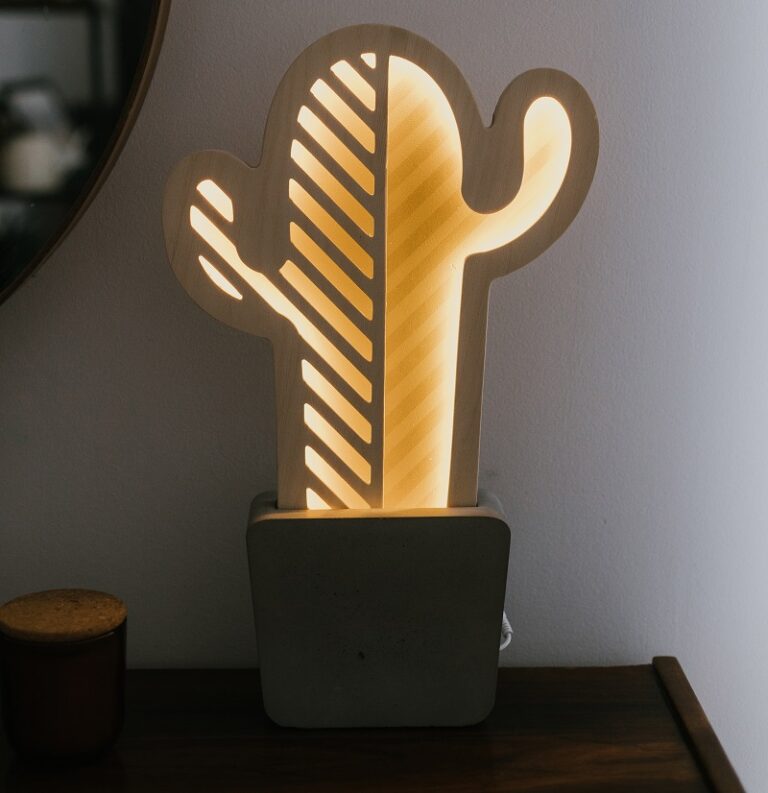 To produkt łączący funkcjonalność lampy i dekoracyjność przemyślanego designu. Lampka nocna która przez swoją nienachalność z dumą może wyjść na salony. “Sukulent” marki UNKY stworzony został ze sklejki brzozowej, i osadzony w autentycznej betonowej donicy – materiału , który święci tryumfy w wystroju wnętrz ostatnich lat. Lampka z powodzeniem wpasuje się zarówno w dziecięce aranżacje wnętrz, jak i wypełni wolną przestrzeń w pomieszczeniach użytku codziennego.