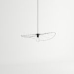 Czarna lampa wisząca ESKOLA 70 wykonana została z metalu i wyglądem przypomina wygięte koło, którego szerokość wynosi 70 cm. Model ten wyposażony jest w nieosłonięte źródło światła, które zdobi jedynie kolisty stelaż. ESKOLA 70 pozbawiona jest więc typowego klosza, przez co żarówka pozostaje stylowo odsłonięta. Tego rodzaju rozwiązanie doskonale wpisuje się w klimat industrialny oraz loftowy.
