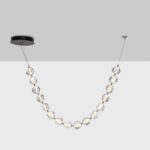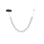Designerska lampa sufitowa Chepen na okrągłej podsufitce posiada oryginalny klosz składający się z kilkunastu elementów, który zawiesza się pod sufitem w dwóch punktach. Klosz swobodnie opada tworząc świetlny łańcuch! Oferowana lampa w designerskim stylu Chepen dostępna jest w trzech różnych wielkościach, co daje możliwość dopasowania jej do różnych przestrzeni.