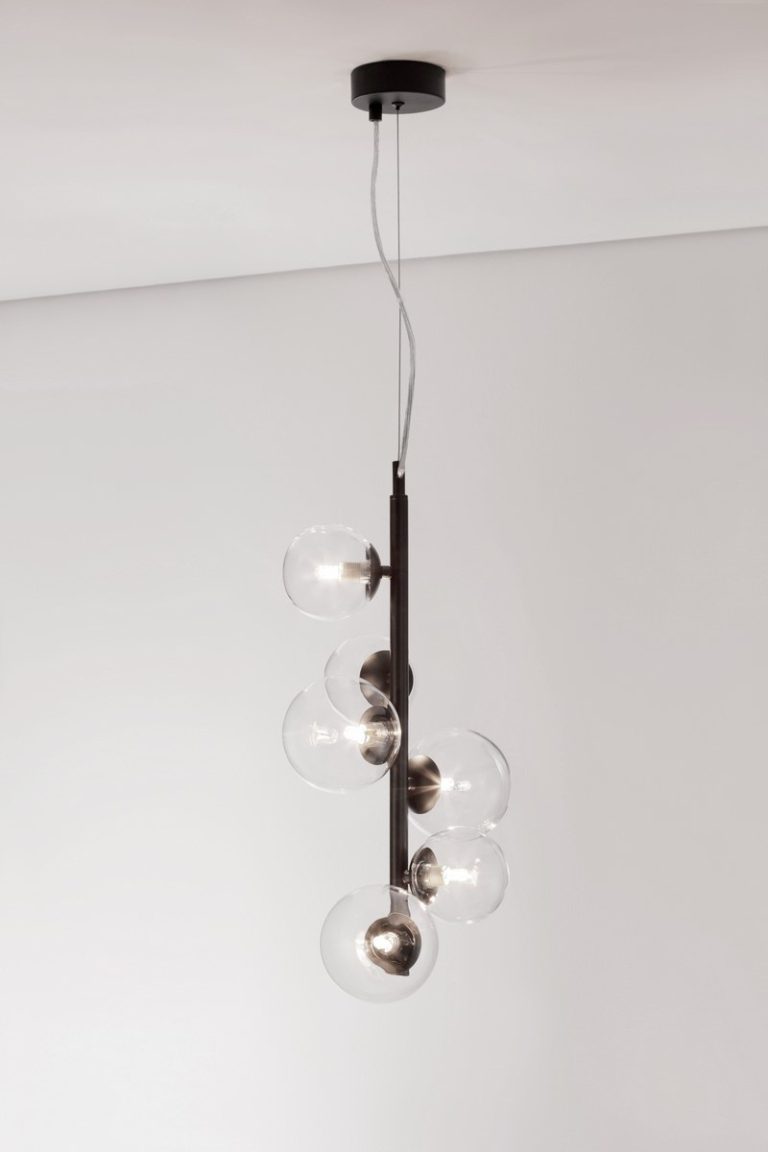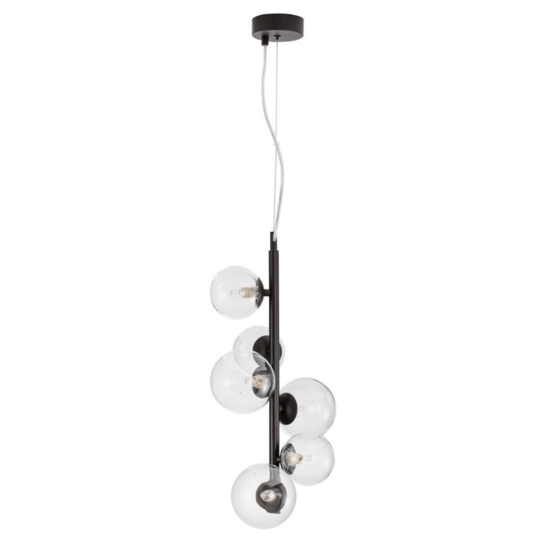 Za sprawą sześciu źródeł światła, nasza pionowa lampa daje jasne, miękkie i równomiernie rozchodzące się po pomieszczeniu światło. Polecamy ten czarny żyrandol do stylistyki nowoczesnej oraz do wnętrz industrialnych i minimalistycznych, które potrzebują odrobinę lekkości i kobiecości. Nasza designerska lampa wisząca fantastyczne prezentuje się zarówno w jasnej, jak i ciemnej scenerii, lubi otoczenie chłodnych barw, a także dodatki ze szkła i metalu. Będziesz zachwycony efektem, który uzyskasz oświetlając i ozdabiając swój salon tym czarnym żyrandolem.