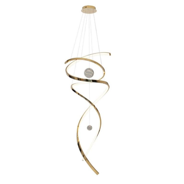 Tym, co najbardziej przykuwa wzrok, jest niezwykle designerska forma całości. Lampa wisząca Ritz ma kształt nieregularnego splotu, przypominające tańczące wstęgi. Ta przepiękna konstrukcja jest wyposażona w oświetlenie LED z funkcją ściemniania. To technologiczne rozwiązanie przyda się zawsze wtedy, kiedy będziesz mieć ochotę na nieco bardziej nastrojową atmosferę. Omawiany model emituje światło o barwie 3000 K – idealnie do czytania, odpoczynku i wielu innych czynności.