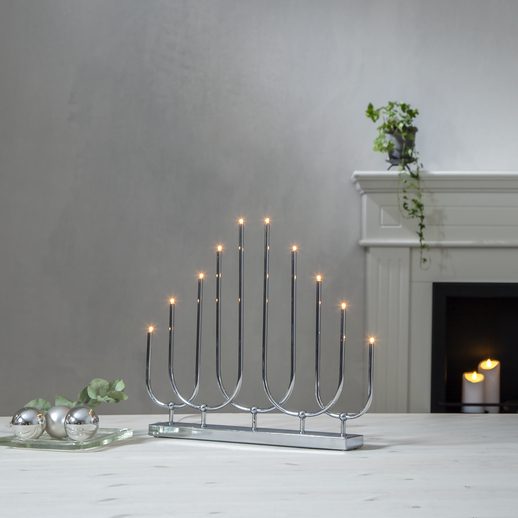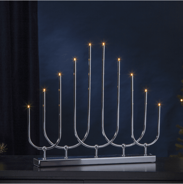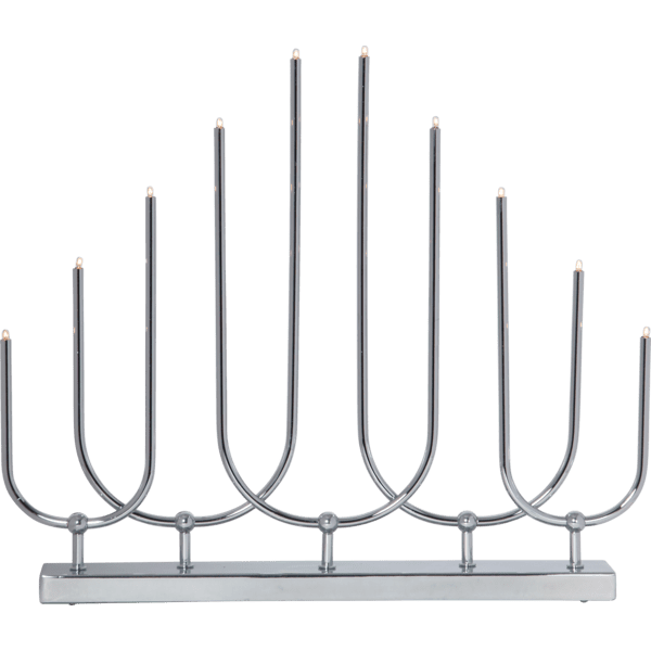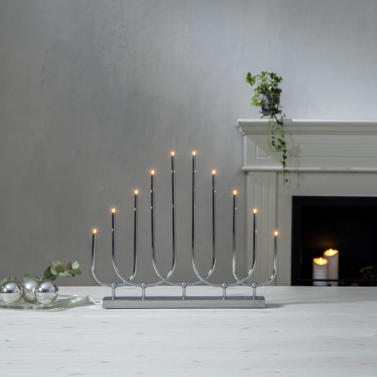 Dostępny w sklepie Ryssa designerski świecznik z metalu przystosowany jest do aż dziesięciu źródeł światła E5. Żarówki możesz wymieniać, dzięki czemu świecznik LED posłużyć Ci może nie tylko przy okazji Bożego Narodzenia, ale także podczas innych ważnych uroczystości. W zależności od efektu, jaki chcesz osiągnąć, zdecydować możesz się na ciepłą, zimną lub neutralną barwę światła.