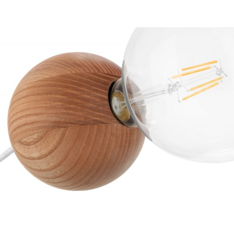 Jedną z najmodniejszych stron SFERNI 3 jest jego prosta konstrukcja o loftowym charakterze. Model ten składa się z trzech źródeł światła, które nie są osłonięte żadnymi kloszami, a jedynie ozdobione drewnianymi detalami. Ta wyjątkowa lampa z drewna i metalu doskonale będzie się prezentować z dekoracyjnymi żarówkami o nietypowym kształcie – koniecznie wybierz te z gwintem E27 i moc nie większej niż 60W.