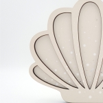 Kinkiet Muszelka wykonany został z certyfikowanej sklejki brzozowej, dzięki czemu jest zarówno bezpieczny, jak i ekologiczny. Model posiada dwa typy zasilania do wyboru: na baterie trzy AA lub za pomocą zasilacza z wtyczką USB. Dodatkowo Muszelka oferuje dwie barwy światła.