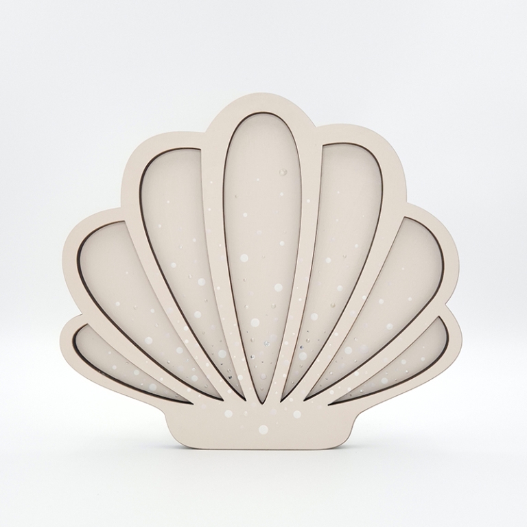 Kinkiet Muszelka wykonany został z certyfikowanej sklejki brzozowej, dzięki czemu jest zarówno bezpieczny, jak i ekologiczny. Model posiada dwa typy zasilania do wyboru: na baterie trzy AA lub za pomocą zasilacza z wtyczką USB. Dodatkowo Muszelka oferuje dwie barwy światła.
