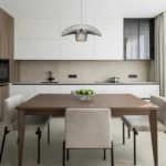 Biała lampa wisząca na listwie Enkel 3 L nad wyspę kuchenną