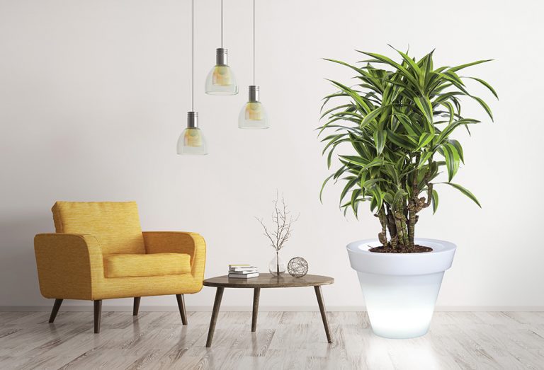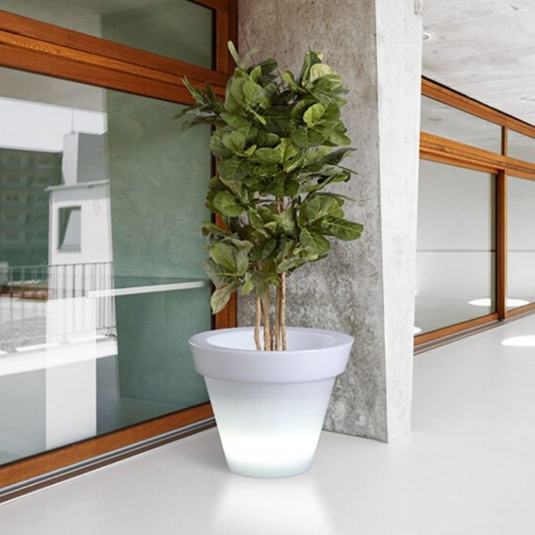 Designerska donica LED Frees to najnowszy trend obecnych czasów. Idealnie przyozdobi przestronny salon, jadalnię, wnętrza hotelowe, restauracyjne oraz biura, które urządzone są w chłodnej tonacji kolorystycznej. Donica wykonana jest z wytrzymałego, odpornego na zarysowania i wgniecenia tworzywa, które zapewnia ochronę przed niekorzystnymi warunkami atmosferycznymi takimi jak; mrozy, wilgoć oraz promienie słoneczne – dzięki temu donica dostosowana jest również do użytku zewnętrznego. Duże rozmiary donicy pozwalają na posadzenie w niej okazałych roślin, których walory będzie podkreślać wydobywające się z niej światło.