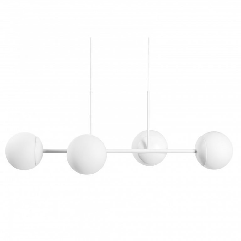 Na uwagę zasługuje mlecznobiały kolor kloszy, które wykonano z matowego szkła. Tego rodzaju wykończenie przepięknie się prezentuje i sprawia, że ta duża lampa wisząca dodaje każdemu wnętrzu nowoczesnego charakteru. Mlecznobiałe klosza osłaniają także nasz wzrok przed agresywnym strumieniem światła, a jednocześnie dokładnie wypełniają przestrzeń rozproszonym blaskiem.