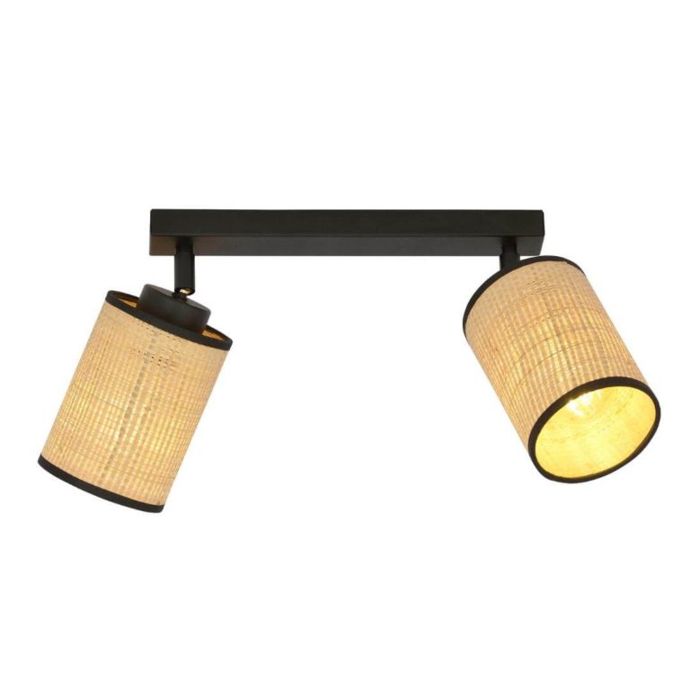 Dwupunktowa listwa sufitowa Eldon 2 z kloszami z rattanu