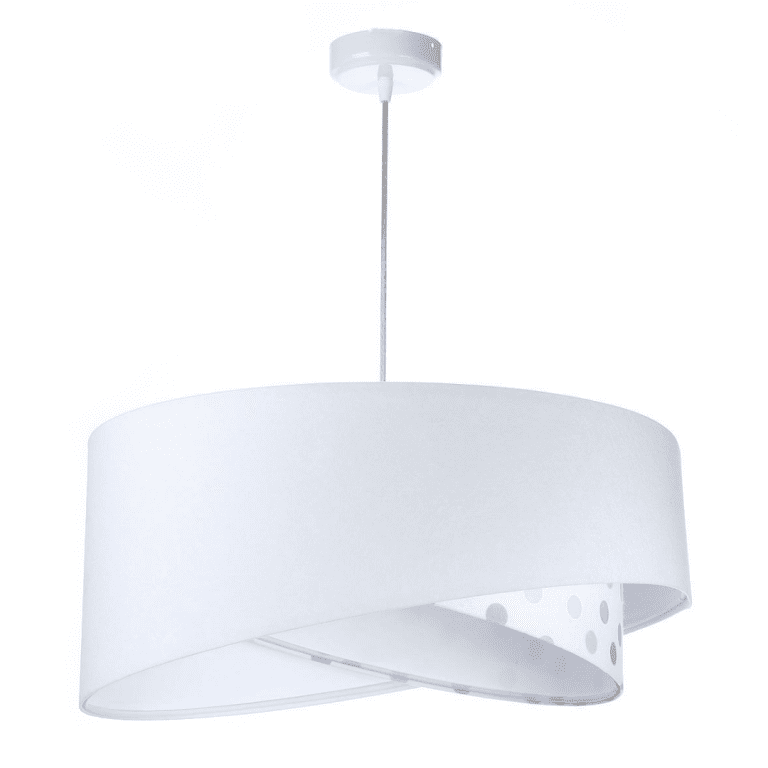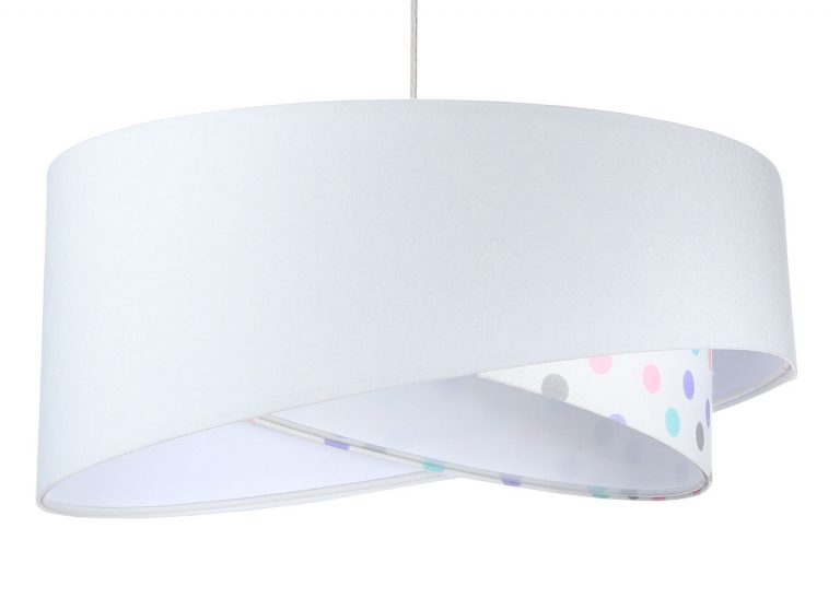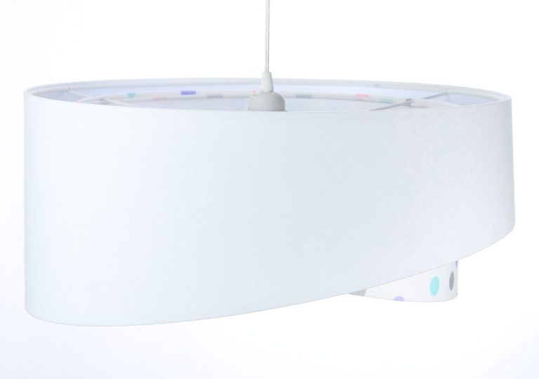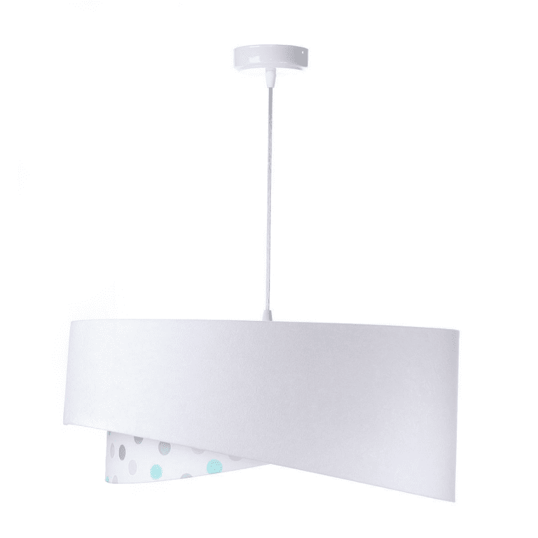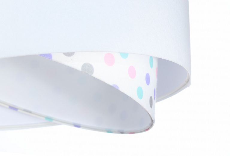 Ponadczasowa biel, nigdy niewychodzące z mody groszki oraz delikatne pastele. Czy może być coś bardziej stylowego i szlachetnego, a równocześnie radosnego i optymistycznego? Oto dziecięca lampa wisząca z asymetrycznym kloszem, która sprawdzi się nie tylko w roli żyrandola do pokoju dziecka, ale również jako nowoczesna lampa do sypialni lub do pokoju dziennego.