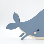 Najbardziej charakterystyczną cechą lampki dziecięcej jest wyjątkowo uroczy kształt wieloryba, który utrzymany został w zgaszonym, przyjemnym niebieskim kolorze. Model wykonano z ekologicznej, certyfikowanej sklejki brzozowej, dzięki czemu wyróżnia go zarówno wysoka jakość, jak i bezpieczeństwo użytkowania.