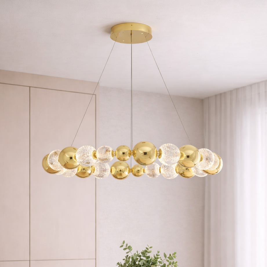 Lampa wisząca Ponce A ze szklanymi oraz złotymi elementami