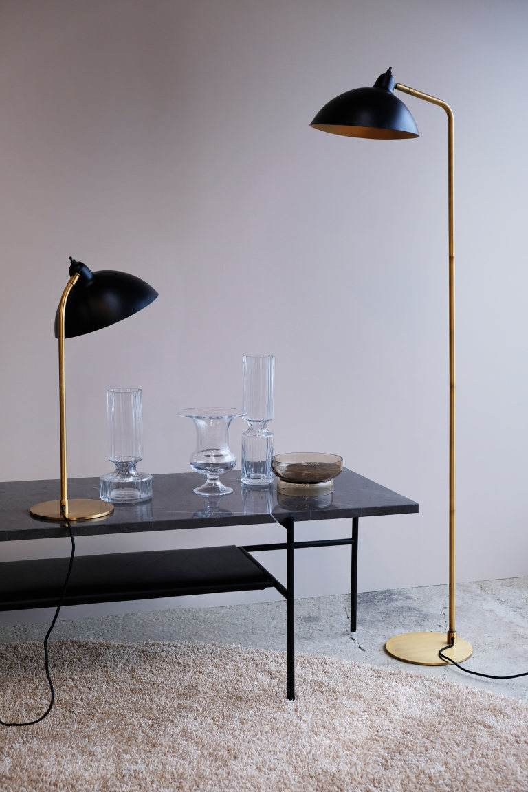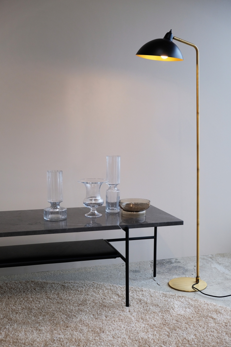 Elegancka lampa podłogowa Futura na mosiężnym stelażu