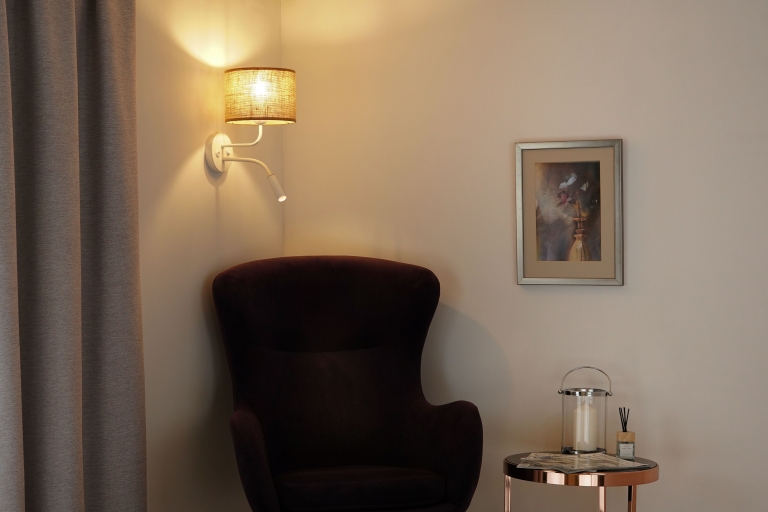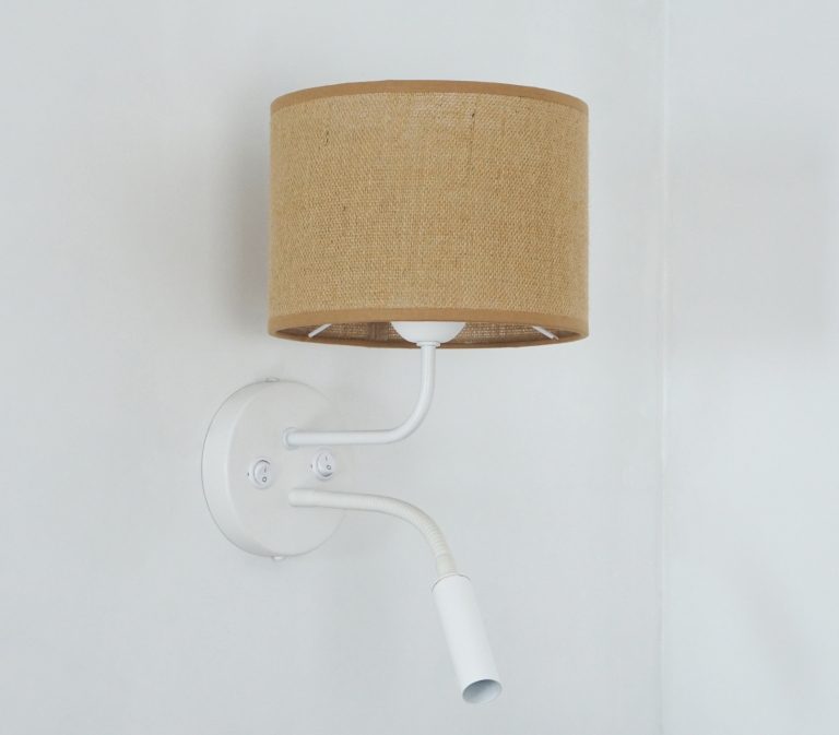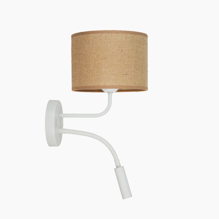 Zbuduj klimat w swoim wnętrzu – wybierz lampę ścienną Hotelove! Abażur z naturalnej juty zapewnia łagodnie rozproszone światło, wypełniając całe wnętrze wyjątkowo przytulną atmosferą. Model wyposażony został również w dodatkowy, regulowany punkt świetlny doskonale sprawdzający się w czasie czytania. Hotelove to idealny element uzupełniający dla sypialni, salonu lub pokoju hotelowego, łączący styl z funkcjonalnością!