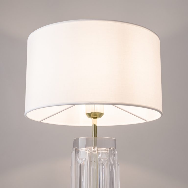 Jej szklana podstawa o subtelnych kształtach dodaje wnętrzu lekkości i jest doskonałym dopełnieniem białego tkaninowego abażuru. Elegancka lampa stołowa Muse na szklanej podstawie z białym kloszem równomiernie rozprasza światło, tworząc przytulną atmosferę.