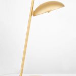Elegancka lampa stołowa Viboral w złotym kolorze wykonana jest z wysokiej jakości metalu, który zapewnia oprawie trwałość. Model wyposażony jest w oryginalną podstawę w kształcie obręczy, która stabilizuje prosty stelaż z kloszem w kształcie misy.