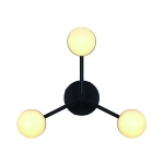 Projekt lampy opiera się na trójramiennym stelażu z trzema kloszami w kształcie kuli. Geometryczna forma zestawiona została z oryginalnym wykończeniem: górna część kloszy wykonana została z czarnego metalu, dolna zaś z białego szkła. Kontrastowa kolorystyka idealnie oddaje charakter współczesnych wnętrz, intryguje, a jednocześnie pozwala na zastosowanie w aranżacji zupełnie innych barw – czerń i biel pasują do wszystkiego!